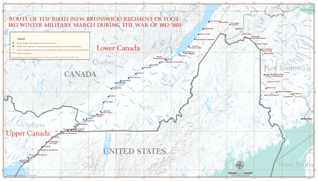 This map was produced for a ceremony commerating an officer of the 104th depicting their journey from Moncton to Kingston in the War of 1812